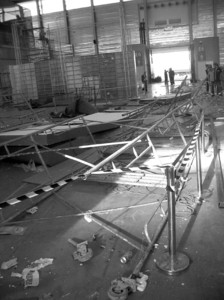 知情者告訴記者,E6展館之前承辦了中國國際工程機械、建筑機械、工程車輛及設備展覽會,28日展會結束后,按慣例要將專為機械展會搭設的設施進行清理,為后續展覽會騰空場地。而事發時,那些工作人員就是在原先杭州某展商的展臺進行拆除作業。就在他們利用進口手拉葫蘆等簡單工具,將沉重的拱門和木板吊放到地面時,由于操作失誤,施工平臺突然出現了傾斜,并且在很短時間內倒塌。
