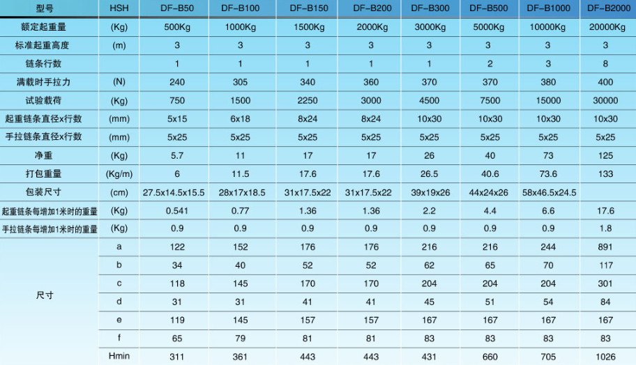 KACC手拉葫蘆產(chǎn)品參數(shù):
