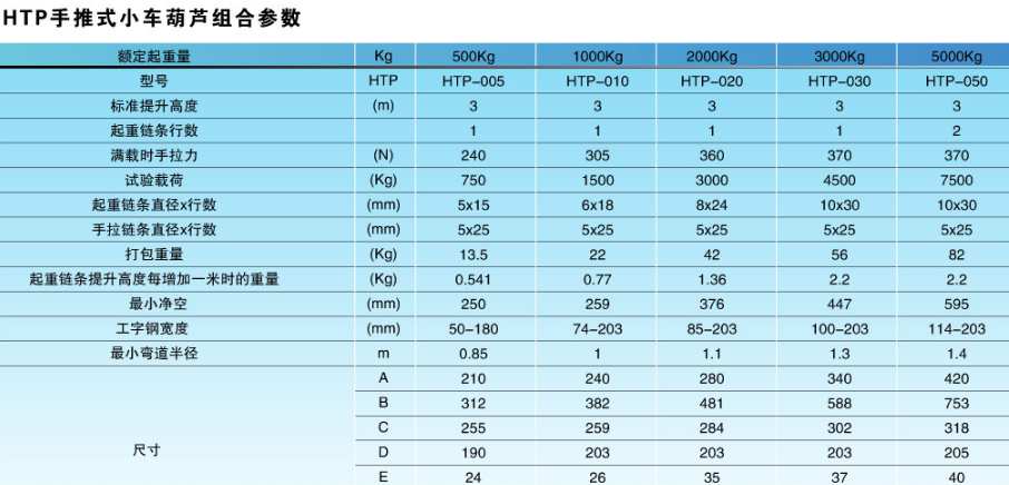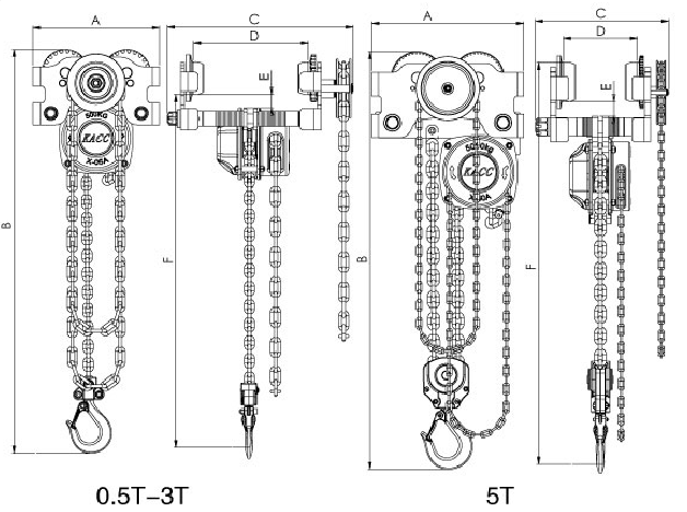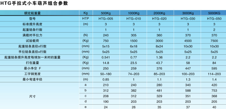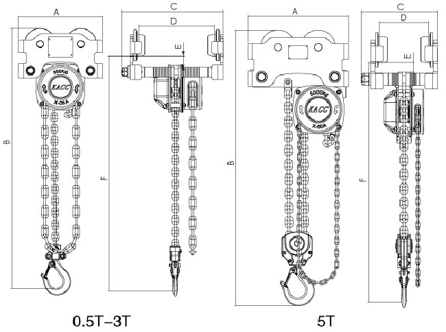 KACC牌組合式手拉葫蘆、手推式詳細(xì)參數(shù):