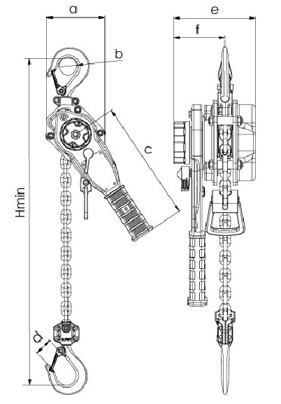 4、懸掛裝置和載重吊鉤由抗老化、高強度合金鋼制成,當萬一出現超載的情況下首先會發生變形而不會突然斷裂。
